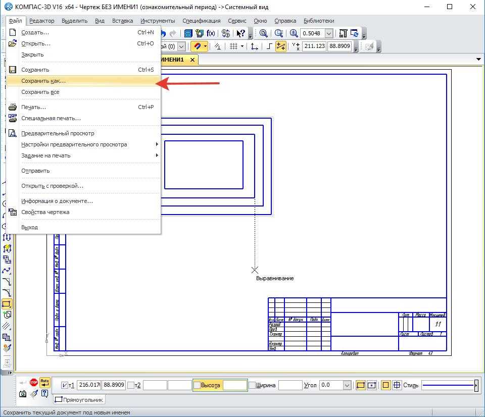 1. Перейдите в меню «Файл» программы Компас, выберите «Сохранить как», а затем выберите подходящий тип файла (JPEG, BMP, PNG).