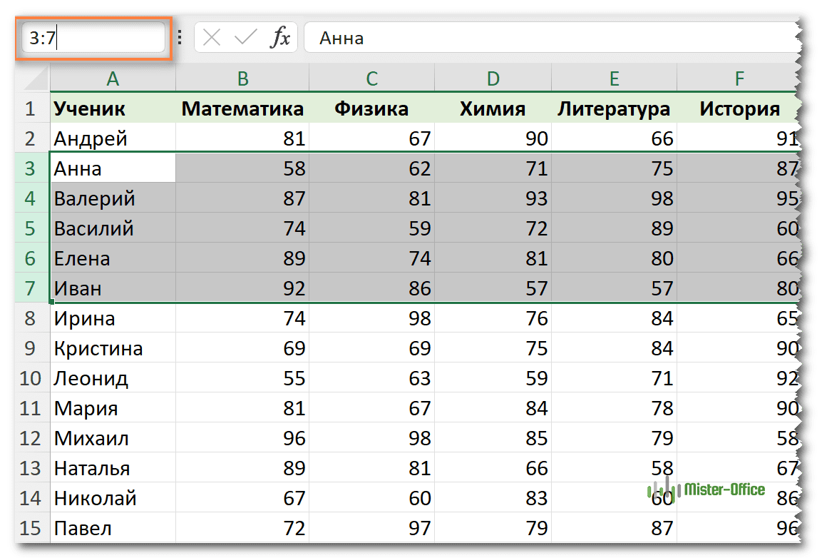 Помимо традиционных методов выбора строк в Excel, есть еще один удобный метод, который предполагает использование поля «Имя».