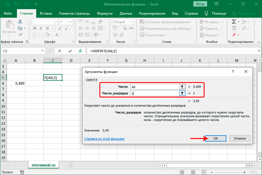 В аргументе “Число” указывается значение, которое требуется округлить. В числе разрядов, соответственно, пишем количество цифр, которые хотим оставить после запятой.