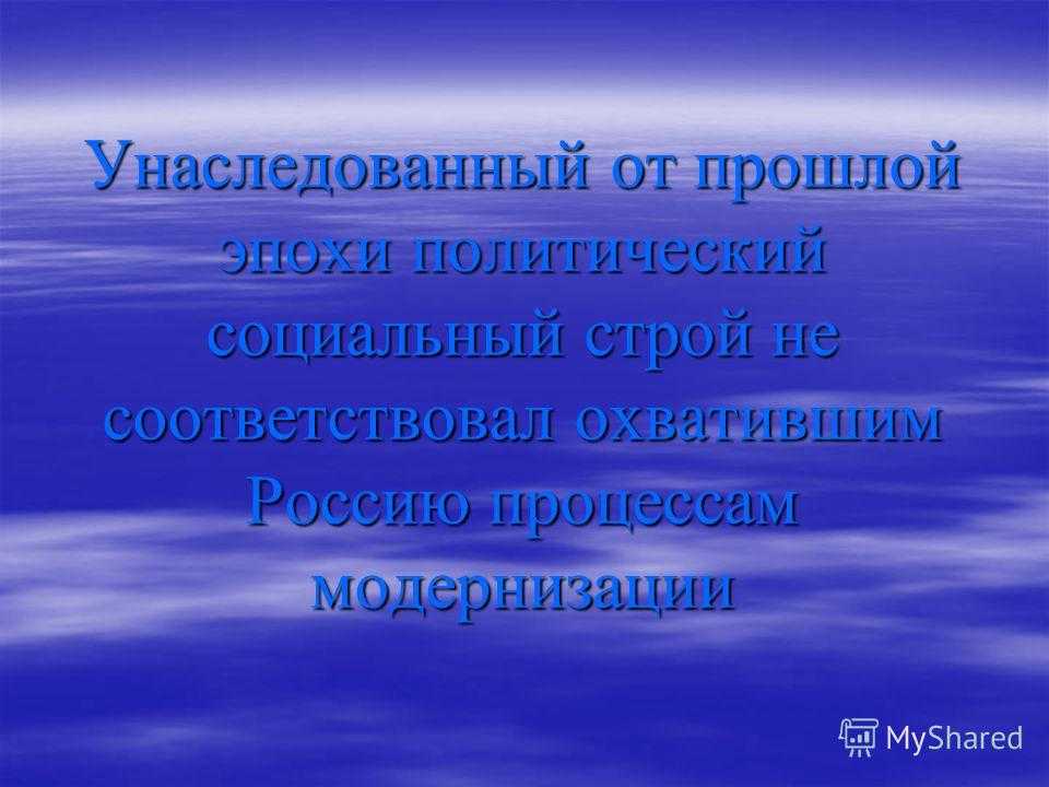 Унаследованный от прошлой эпохи политический социальный строй не соответствовал охватившим Россию процессам модернизации