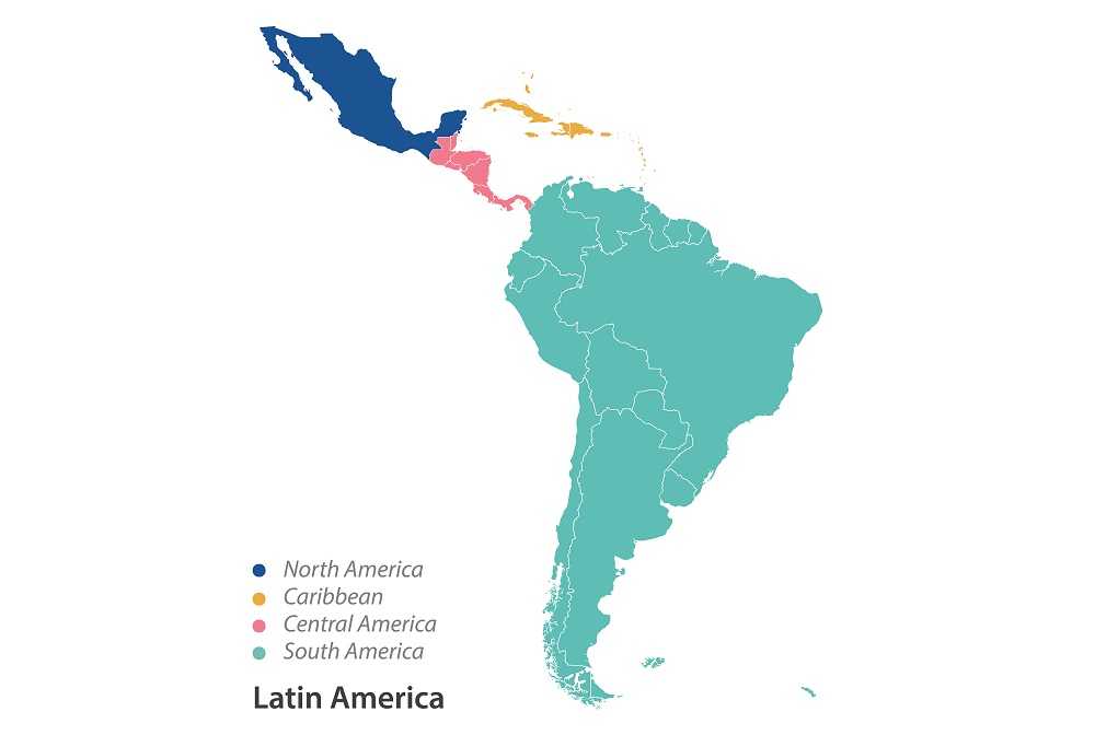 Территориально занимает весь южноамериканский континент, захватывает страны карибского региона, а также Мексику, находящуюся в Северной Америке.