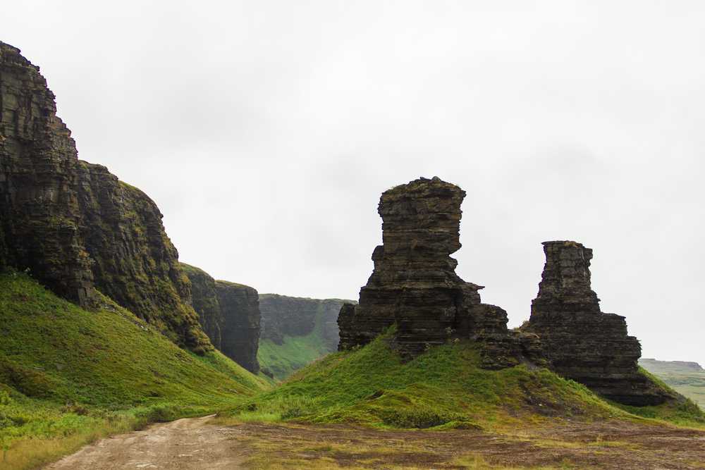 В Териберке есть каменный пляж, который прозвали «Яйца дракона». Огромные, будто отполированные валуны разбросаны прямо по берегу моря. Камни веками обтачивала вода, и они стали гладкими, правильной формы — выглядит очень непривычно для нашего глаза. Местами валуны поросли водорослями и могут быть скользкими, поэтому ходить нужно аккуратно. Раньше туристы любили уносить камни с пляжа в качестве сувенира, но сейчас берег вошел в состав природного парка, и за «кражу» можно получить штраф.