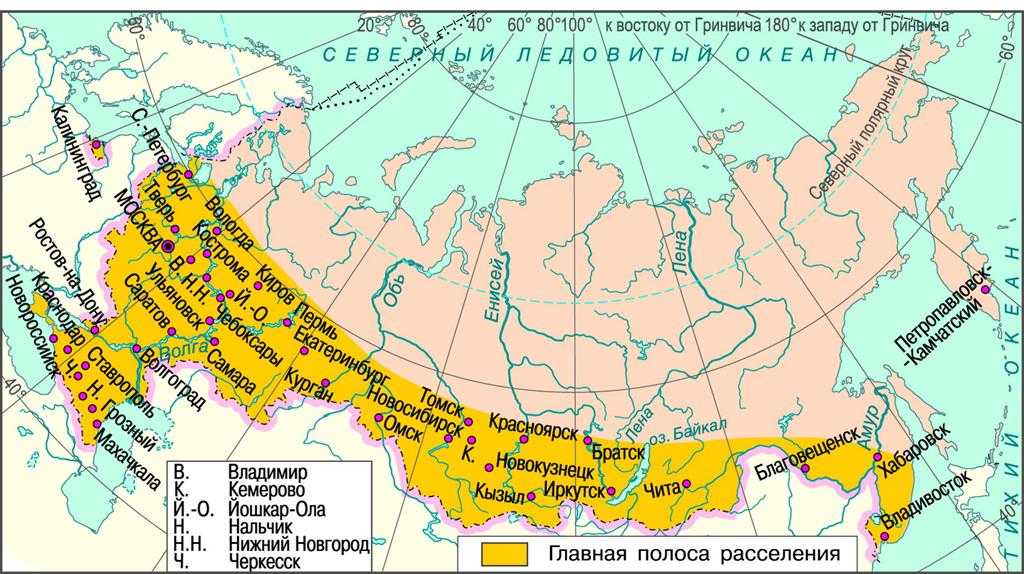 - Чем отличается характер размещения населения в зоне Севера и в Главной полосе расселения?