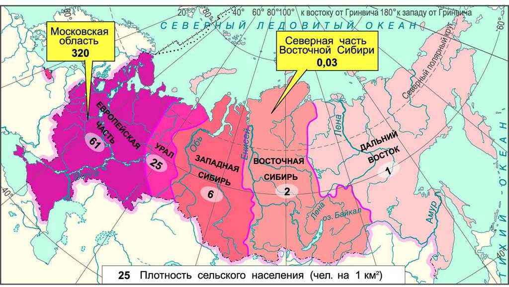 - Средняя плотность населения России составляет 8,5 человека на 1 км2.