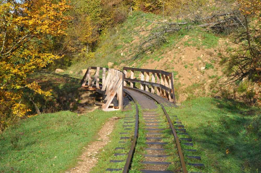 Конечная остановка это “Кафе 1707” – это примерно четверть всего пути. Дальше можно пройти пешком в сторону Мезмая по недействующей узкоколейной ветке. Остаток пути составляет около 8 км.