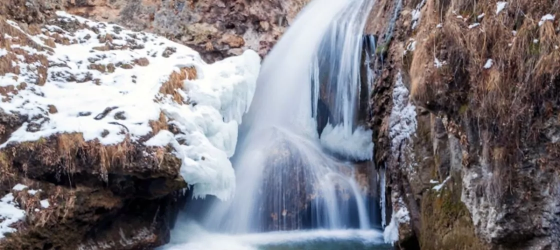 Медовые водопады представляют собой живописное место не только летом. Зима в этом регионе не холодная, бывали редкие случаи понижения температуры до -30 °C. Снег ложится в январе, преимущественно на горных склонах. Зимой частичное замерзание образует хрустальные каскады из сосулек, водопады превращаются в сказочные ледовые замки. «Стеклянные» глыбы переливаются на солнце разными оттенками голубого.