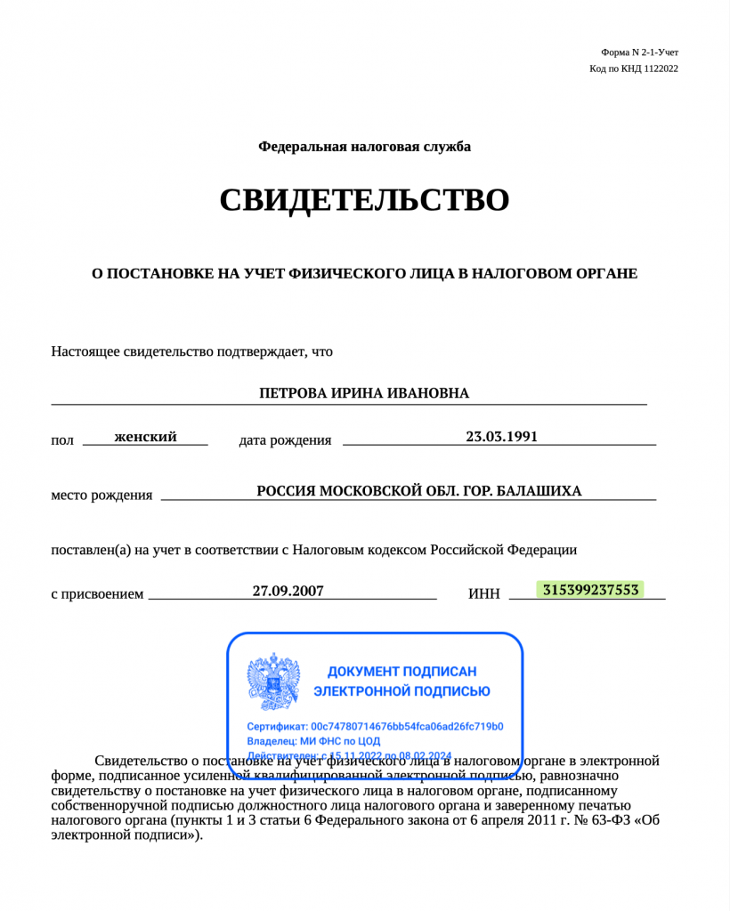 Физлица получают ИНН раз и на всю жизнь. Номер сохранят, даже если человек сменит ФИО или переедет в другой город. А если гражданин владеет недвижимостью в разных регионах, его поставят на учет в разных налоговых инспекциях, но под одним ИНН.