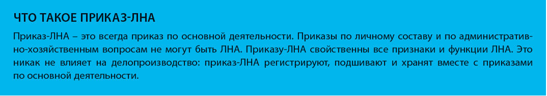 Чтобы обозначить признаки локального нормативного акта, обратимся к определению этого понятия. Локальный нормативный акт (далее – ЛНА) – нормативный правовой акт, действующий только в издавшей его организации или нескольких организациях, если ЛНА совместный.