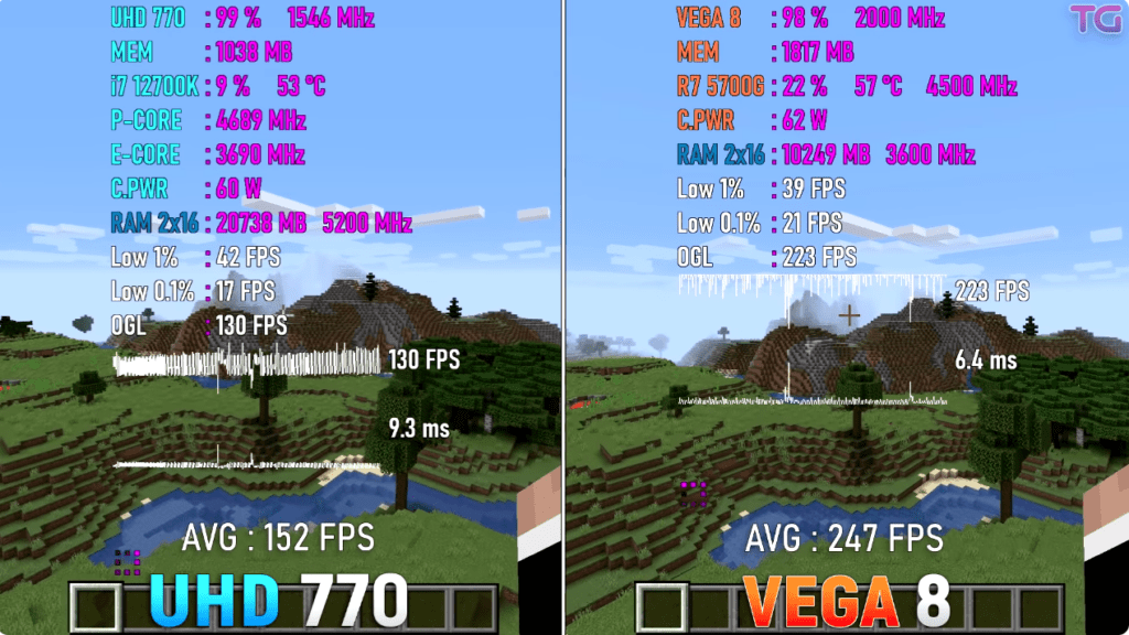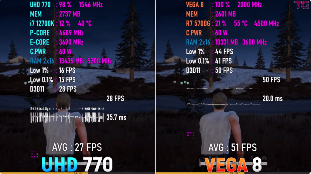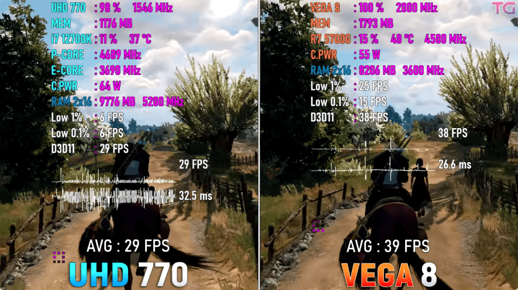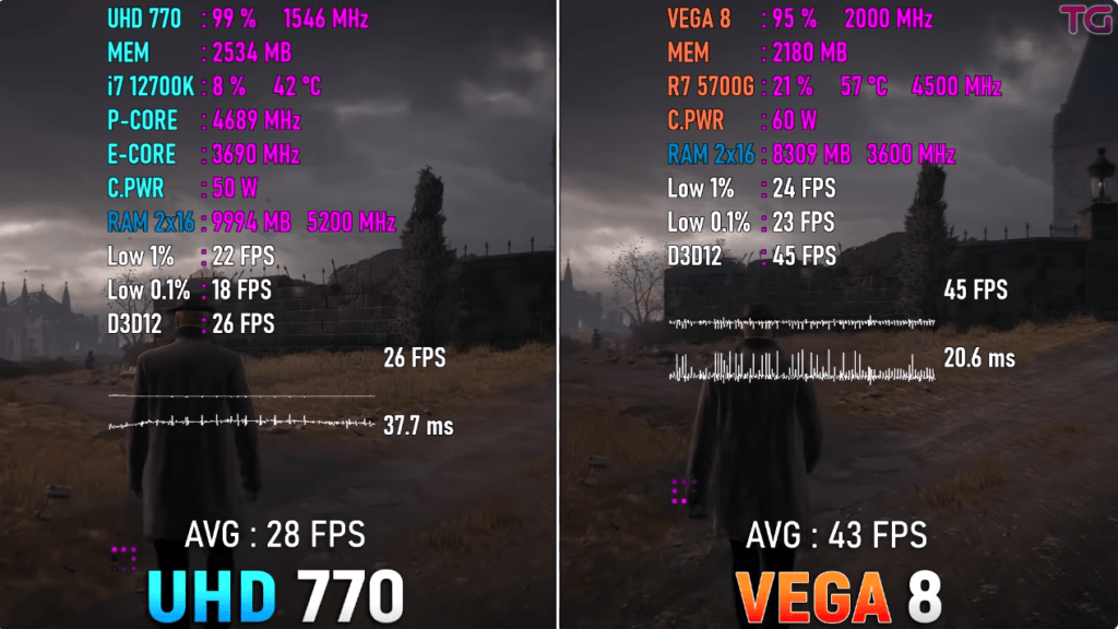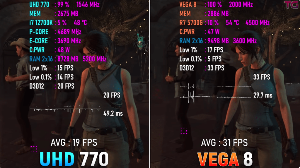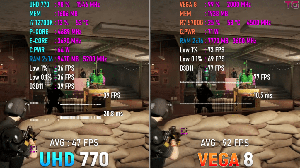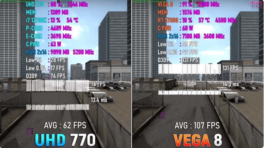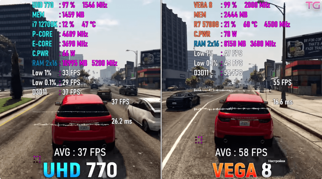 AMD Radeon Vega 8 vs Intel UHD Graphics 770: тест FPS в играх