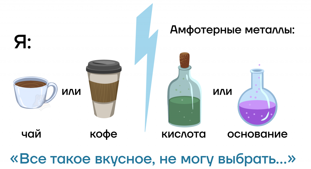 Как и мы порой делаем сложный выбор, так и амфотерные металлы зачастую не могут сразу определиться.