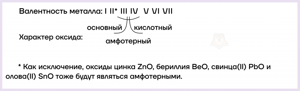 Предсказать свойства оксида металла поможет эта схема: