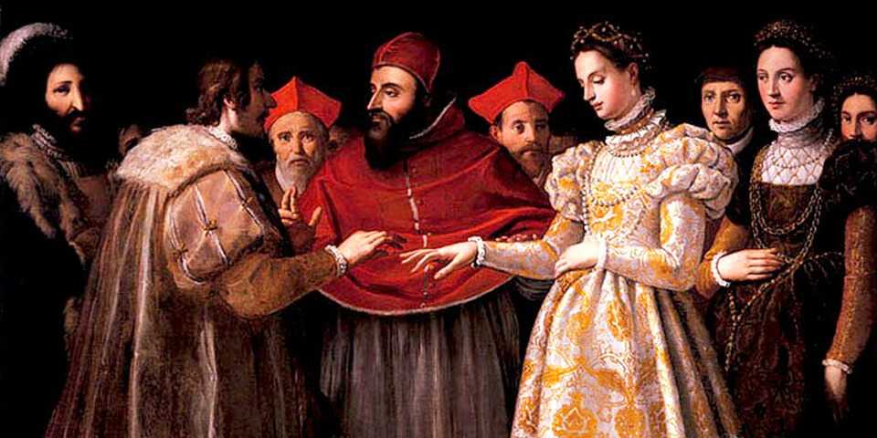 Перепуганную девочку передали Клименту, и он сразу озаботился будущим браком Екатерины, чтобы обезопасить ее. Король Франции Франциск II предложил брак со своим вторым сыном Генрихом, и этот вариант был наиболее оптимальным для нее. В четырнадцать лет ее отправили к своему жениху и двору с богатым приданым.