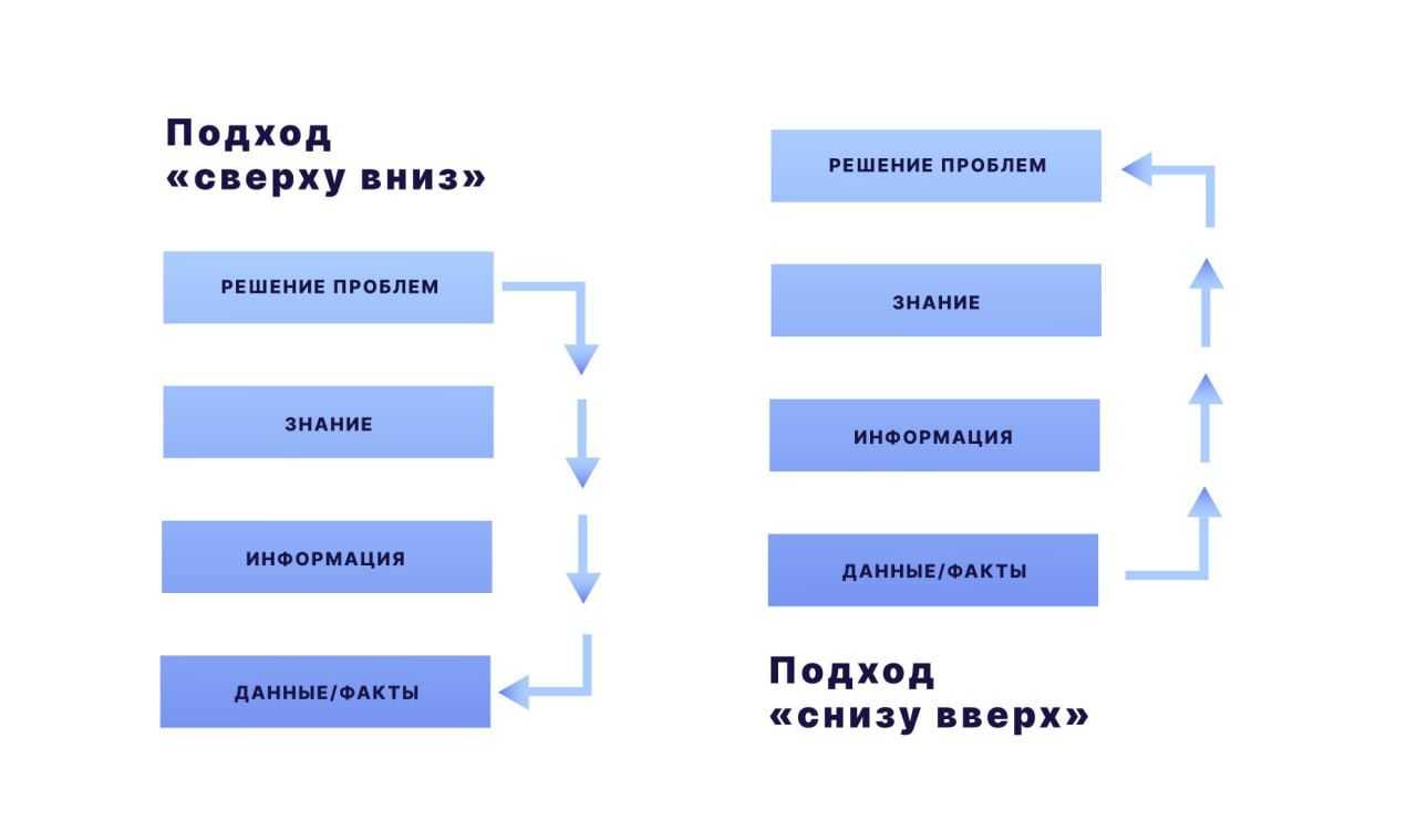 При подходе «снизу вверх» принятие решений начинается с нижней части иерархии. Как это на практике? Гендир или топ-менеджер сосредотачиваются на потребностях клиентов, которые могут передавать ближайшие к ним сотрудники (менеджеры, колл-центр). И уже на основе этого они принимают решения или делегируют их project-менеджерам.