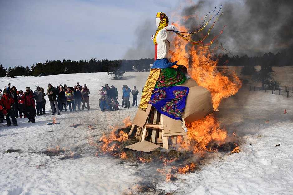 Весну встречали, сжигая чучело зимы, плясками и песнями, а также традиционными угощениями