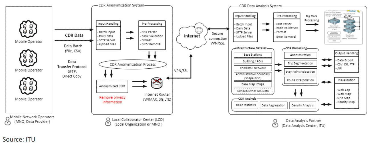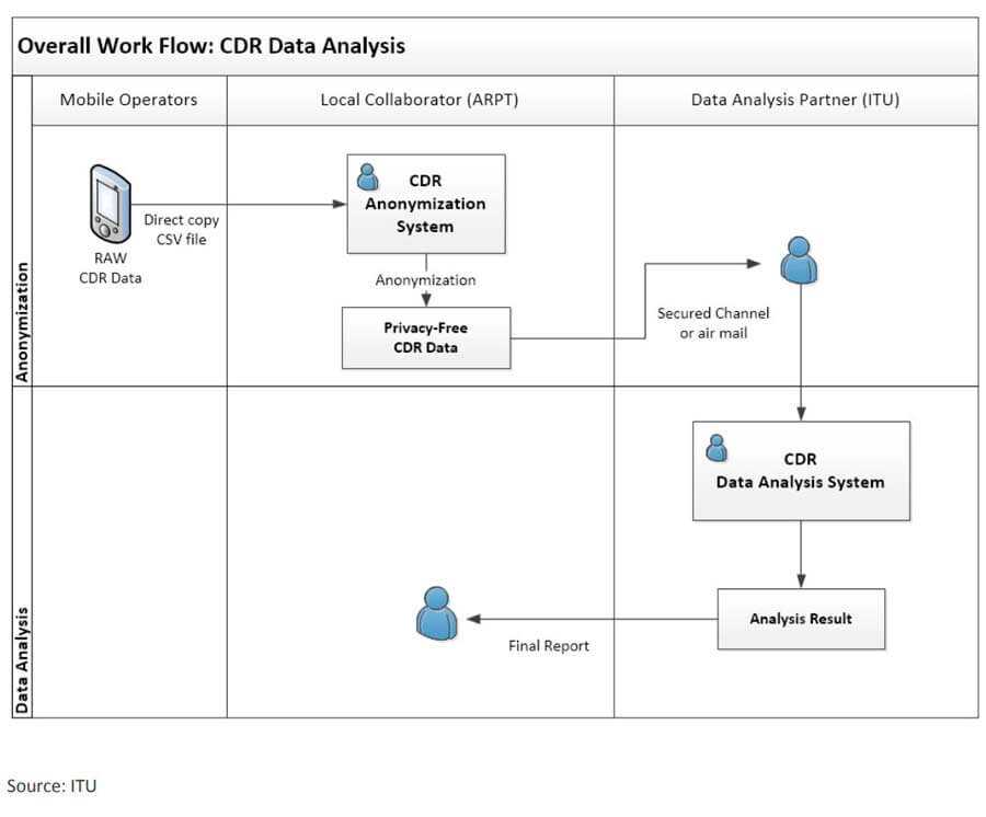 В отчете, опубликованном ITU (Республика Гвинея), довольно подробно описаны как методы, так и инструменты, которыми пользуются аналитики. В целом процесс можно изобразить так.