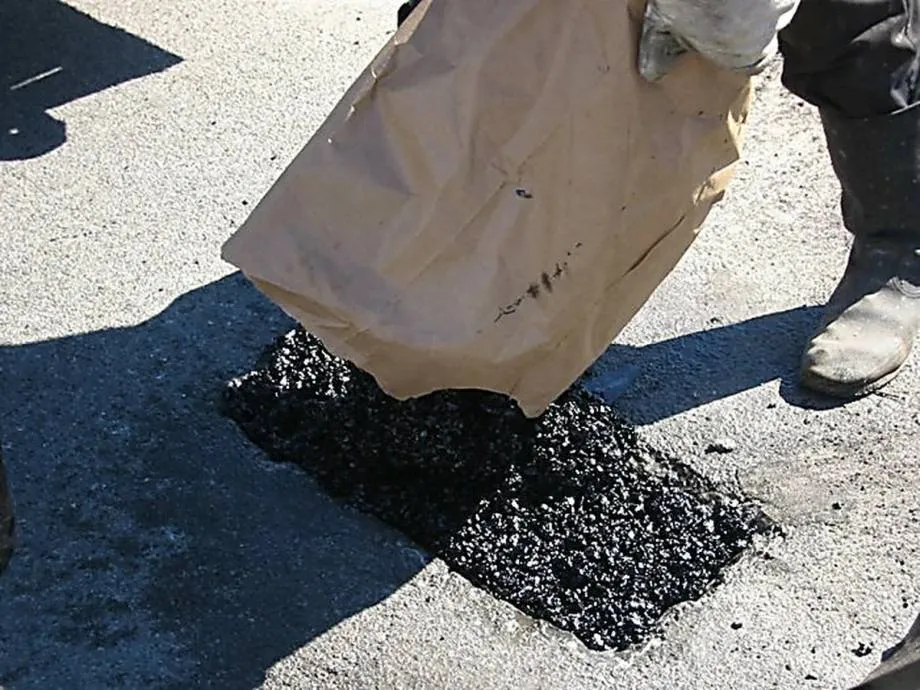 Холодный асфальт хранится в мешках. Расход на 1м² – единственный недостаток материала. На фоне горячих аналогов здесь требуется в 4 раза больше смеси. Зато такой состав можно эффективно использовать в любое время года с соблюдением предельного значения минусовой температуры.