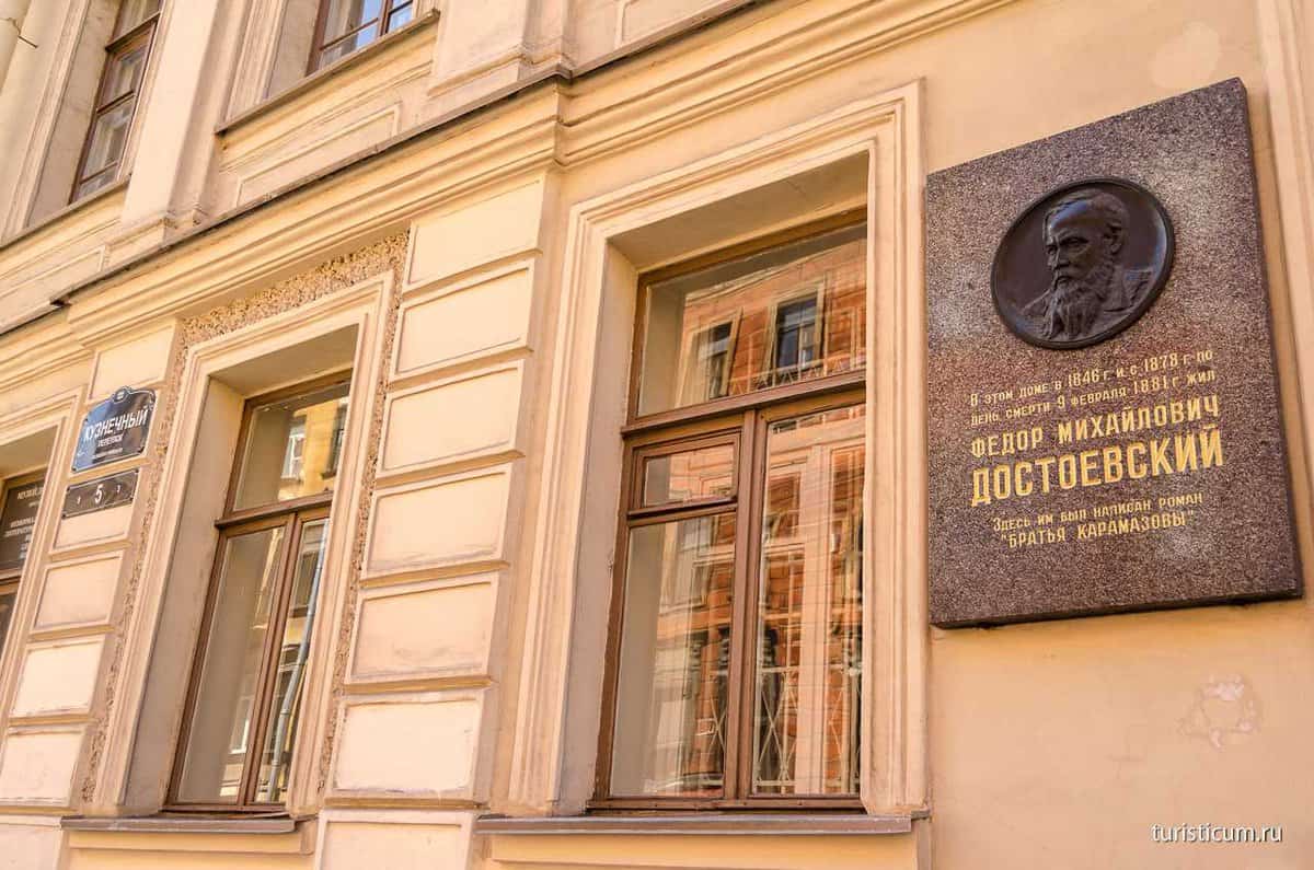 Перед домом-музеем Фёдора Достоевского в Санкт-Петербурге на улице Кузнечный переулок, 5 находится памятник, созданный в память о великом русском писателе. Этот памятник стал своеобразным символом пребывания Достоевского в городе и его общего вклада в мировую литературу.