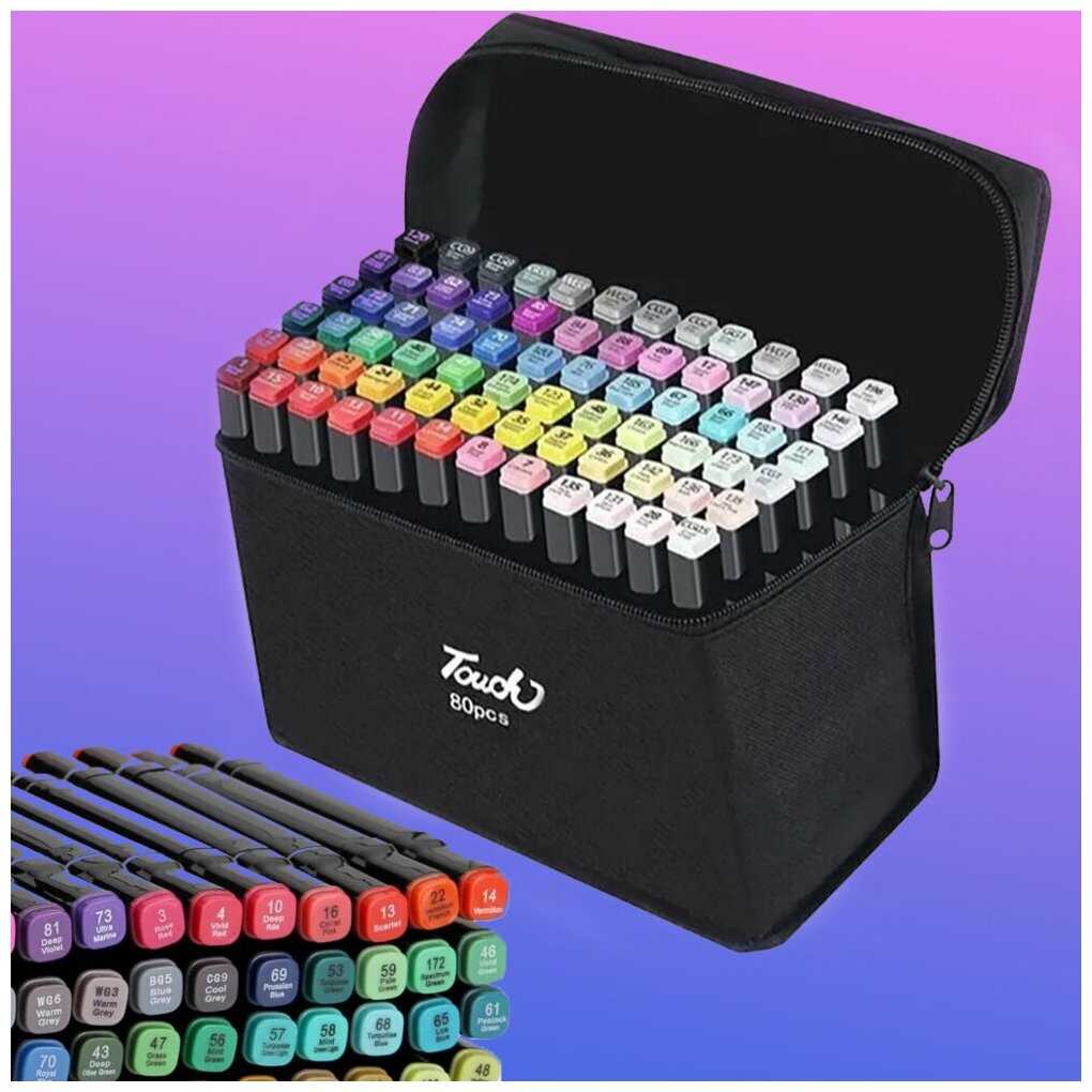 Маркеры для скетчинга / Набор профессиональных двухсторонних маркеров в чехле / 80 цветов