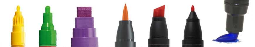 Также продаются сменные наконечники или перья к маркерам. Наконечники можно подрезать острым лезвием для создания разнообразных линий.