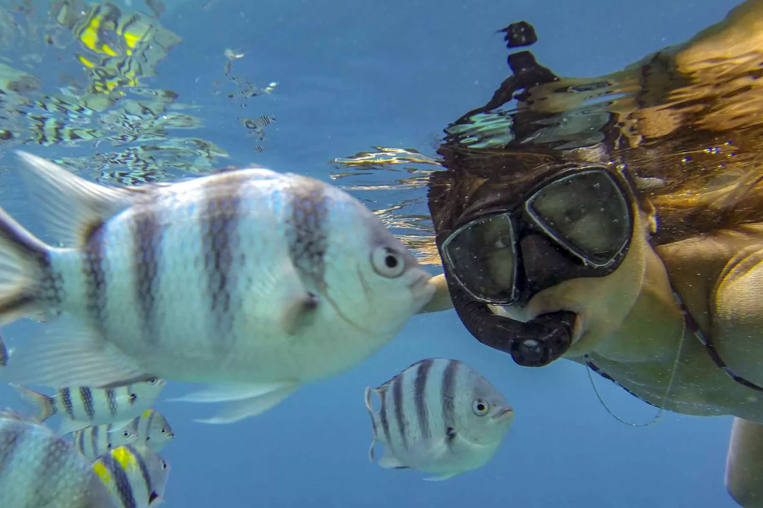 Пожалуй, самый агрессивный из ласточек — сержант-майор. Обычно послушные, самцы этого вида становятся очень оборонительными, когда ухаживают за яйцами. Чтобы предупредить других рыб (и ныряльщиков), что он настроен серьезно, ухаживающий за икрой самец затемняет свое белое тело до синего или индиго. Дайте место синим сержантам-майорам, если не хотите, чтобы вас покусали.