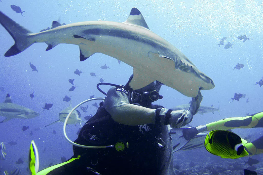 Акулы , вероятно, самые непонятые существа в океане. Они агрессивные хищники , но аквалангисты не являются их естественной добычей. Большинство акул проявляют застенчивое любопытство, если сталкиваются с дайверами под водой. Что-то в шумных пузырях дайвера и его выпученной маске должно их отпугнуть. Несколько травм, связанных с нырянием с акулами, которые действительно случаются, обычно происходят, когда аквалангисты кормят этих животных. При кормлении (особенно с рук) акулы иногда приходят в бешенство и могут по ошибке укусить ныряльщика. По этой причине дайверы никогда не должны кормить акул или других морских обитателей без присмотра профессионала.