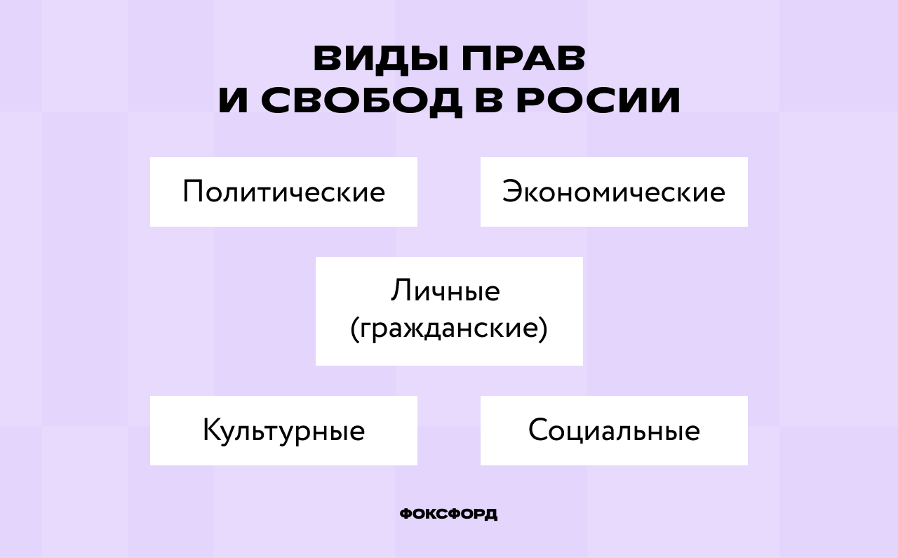 Рассмотрим, что подразумевает под собой каждая категория, и приведём примеры соответствующих статей Конституции.