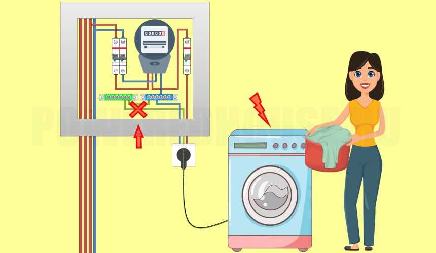 - В этом случае, если человек коснется корпуса стиральной машины, его ударит током. Поэтому нельзя выполнять такой вид зануления перемычкой в розетке.