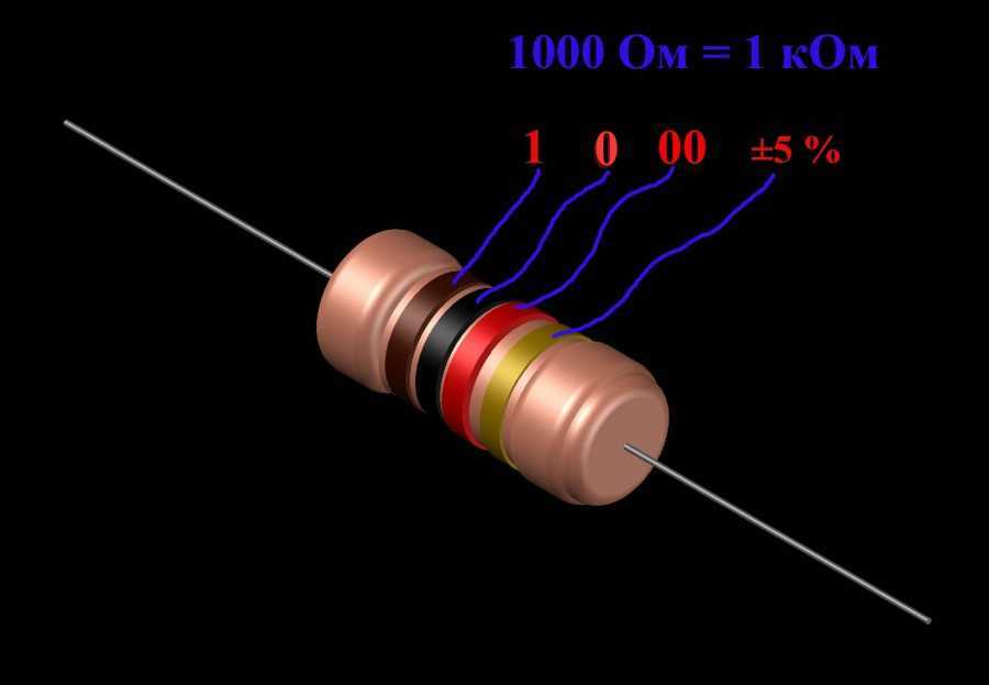 Число в коде обозначает сопротивление в омах, а буква, стоящая после него, указывает на множитель. В полосочном же обозначении используется принцип того, что каждый цвет полоски соответствует своему порядку. Например, красный — двойке, зелёный — пятёрке. Первые две полоски обозначают номинал, третья — множитель, а четвёртая и пятая — допуск.