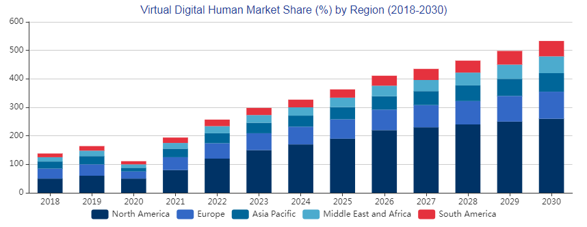 Доля рынка виртуального цифрового человека по регионам (2018-2030 годы)
