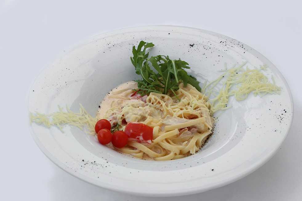 С классическим сливочным соусом можно готовить разнообразные карбонары, добавив ингредиенты по желанию. Одним из них стала курица, позволяющая получить полноценное блюдо, пригодное для ужина или обеда.