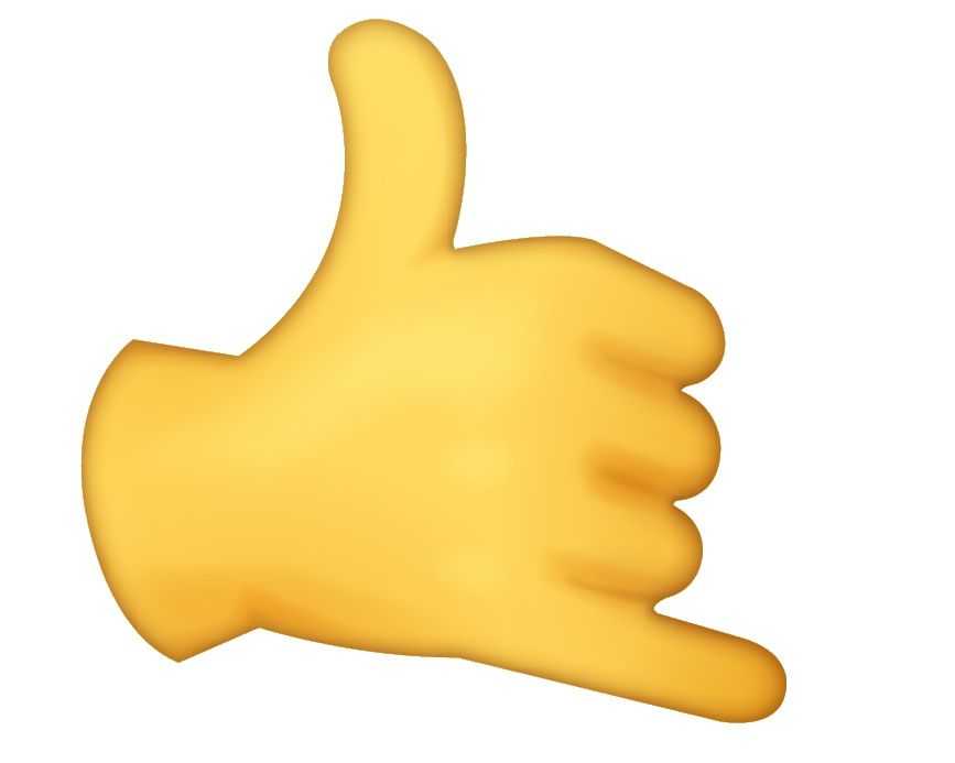 Он похож на традиционную телефонную трубку, поэтому может указывать на то, что вы хотите поговорить с кем-то по телефону. Пилоты также используют его, чтобы пожелать друг другу удачи. А в гавайской культуре он известен как знак «Шака», что означает «болтаться» – нежный жест, указывающий на солидарность.