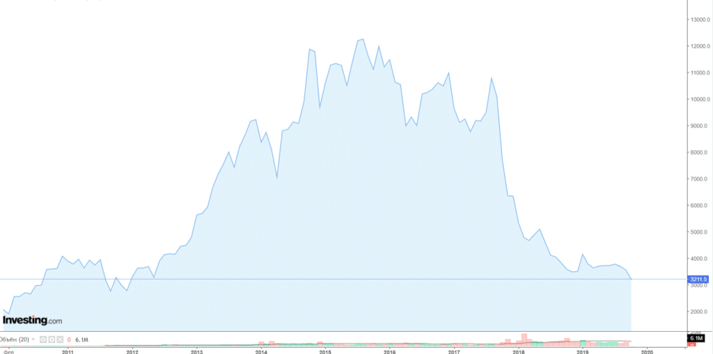 В целом, динамика курса акций за последнее время выглядит примерно так: