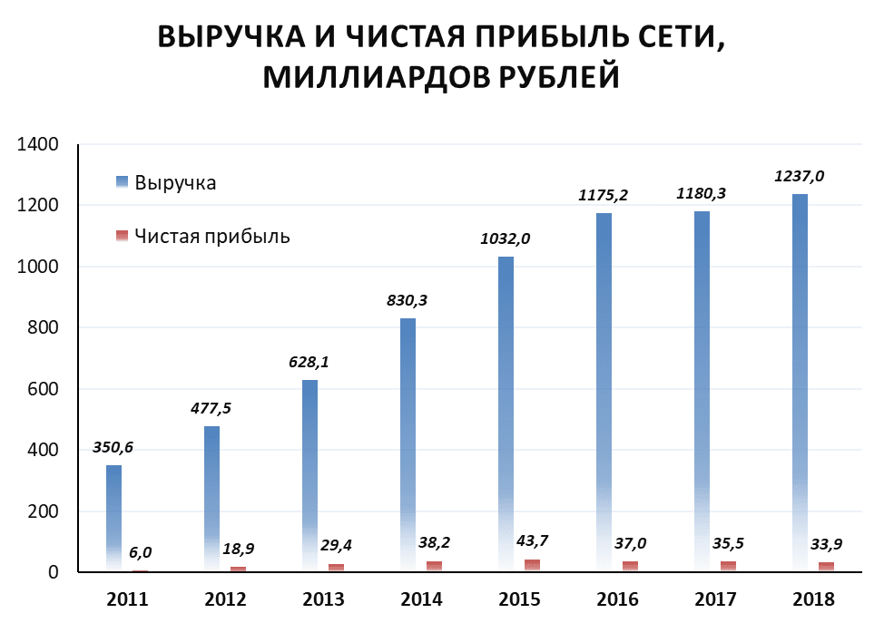 Компания состоит из 16 000 торговых точек. Развитая логистика позволяет вовремя доставлять продукты и товары в магазины по всей стране.