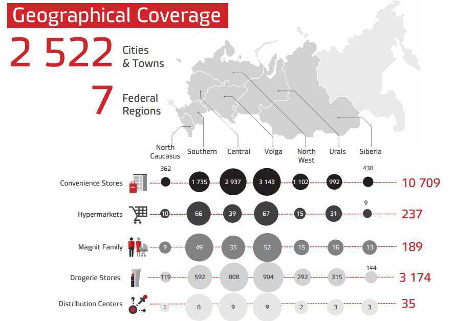 Сеть магазинов «Магнит» является одной из самых крупных в России и активно расширяет свою присутствие в различных регионах страны. К настоящему моменту компания имеет магазины практически во всех субъектах Российской Федерации.