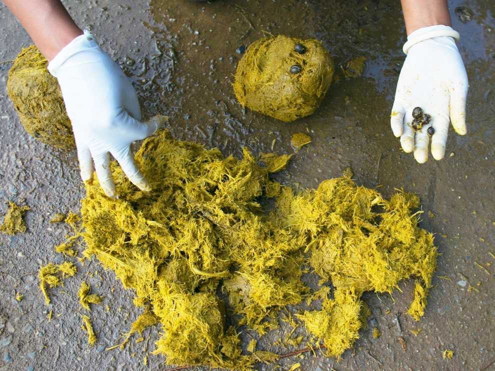 После испражнения слона в высокой траве, погонщики извлекают из навоза зерна кофе, промывают и отправляют их в Бангкок для дальнейшей обработки.