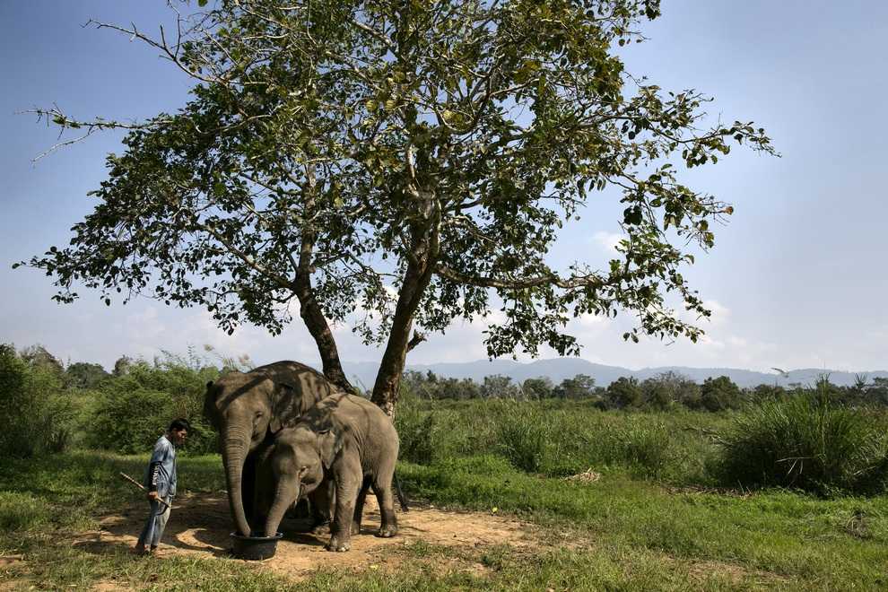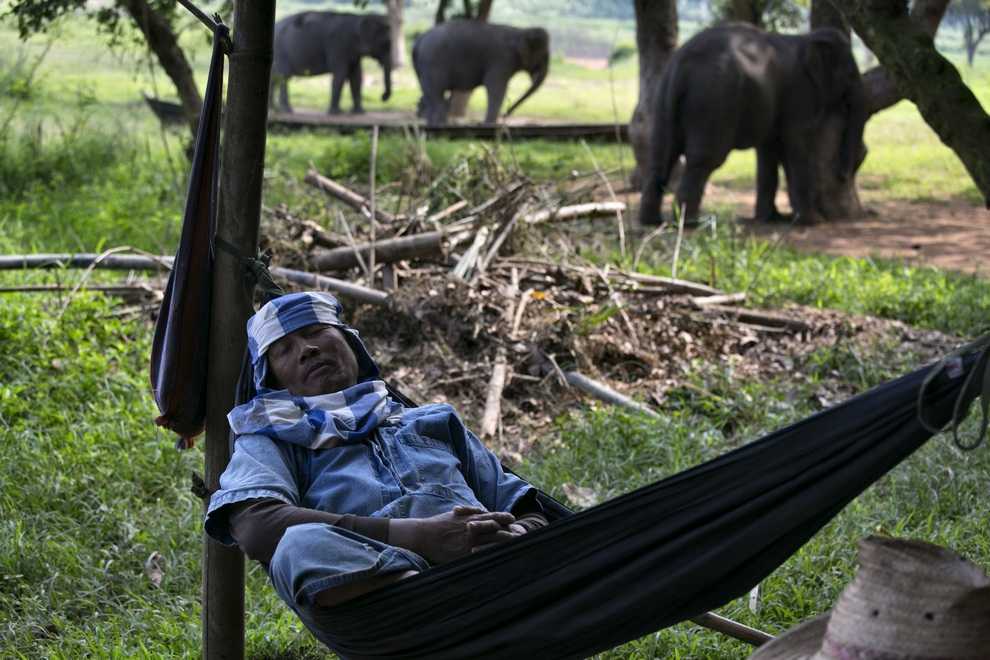 17. Лун отдыхает, пока его слоны «работают» — переваривают кофейные ягоды. (Paula Bronstein/Getty Images)