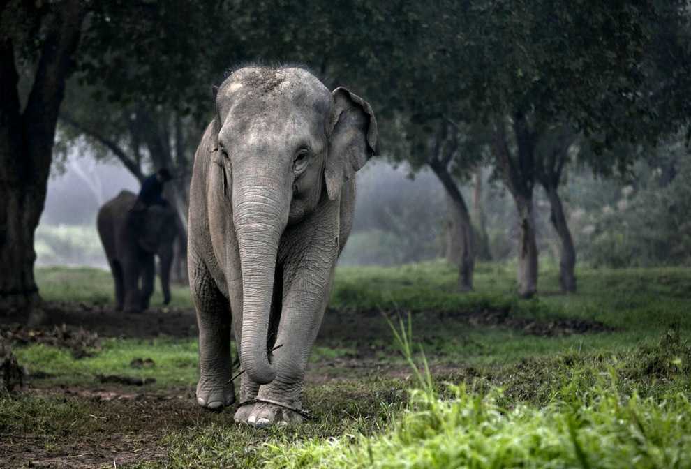 5. Махут (человек, который ездит на слонах) гуляет со своим слоном ранним туманным утром. В это время слоны наедаются травы на лугах. (Paula Bronstein/Getty Images)