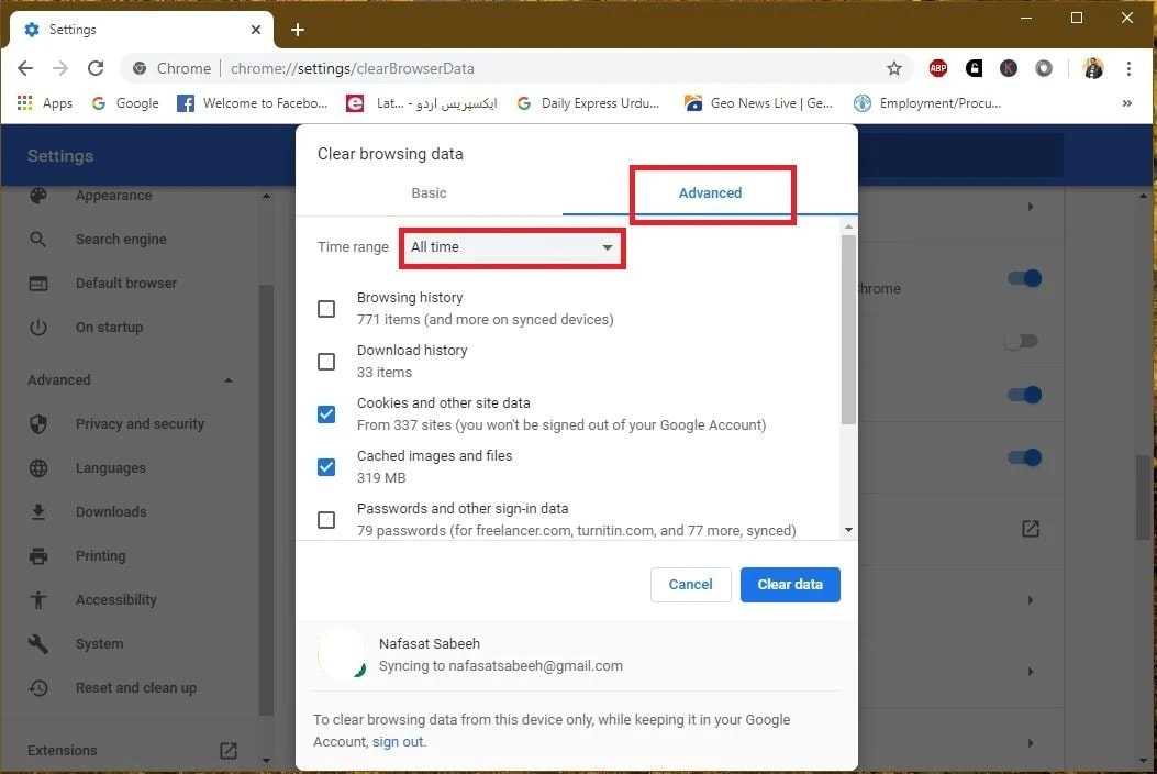 - Then click on the ‘Clear’ button and your browser cache and cookies will be deleted. Do note that clearing all your cookies will also log out of all the websites that you are currently logged in your browser.