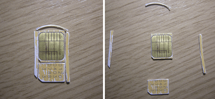 Некоторые умельцы при помощи бумаги и двустороннего скотча добиваются нужного размера карточки в домашних условиях, обрезая правильные габариты бумажного шаблона или, подкладывая небольшой кусочек бумаги для плотного прижимания симки к контактам в слоте.