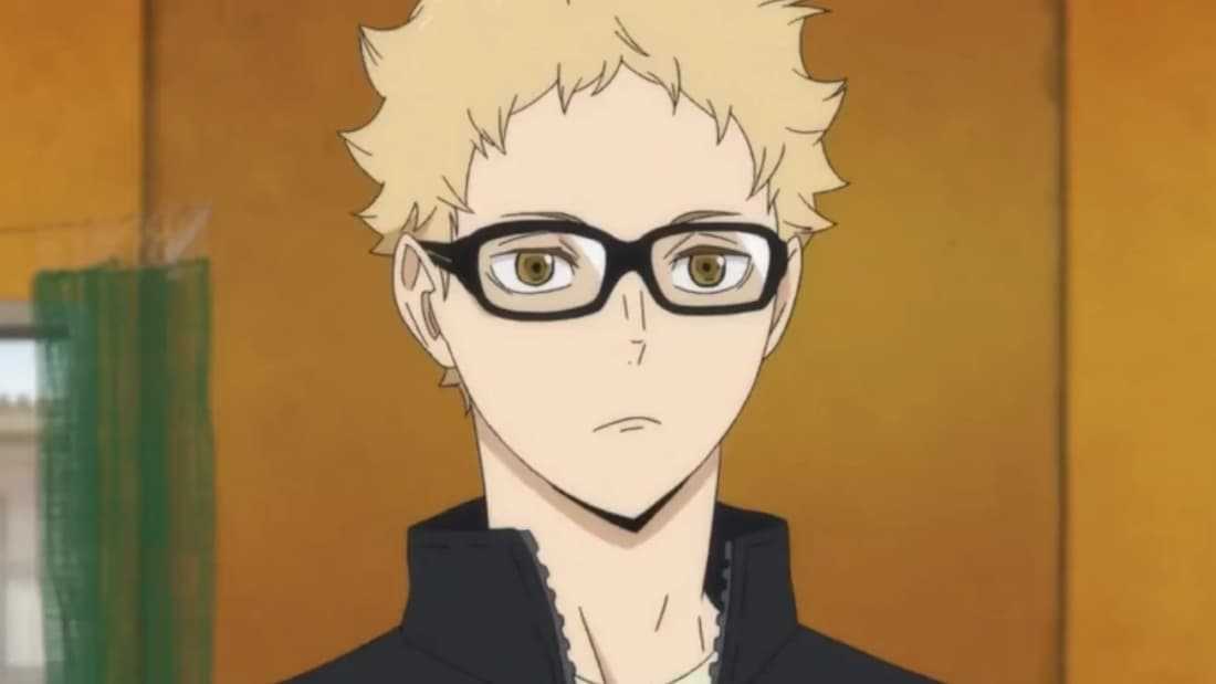 Belonging to Karasuno High, we have Tsukishima Kei. He is one of the 1st year players with an insane height of 190 cm.