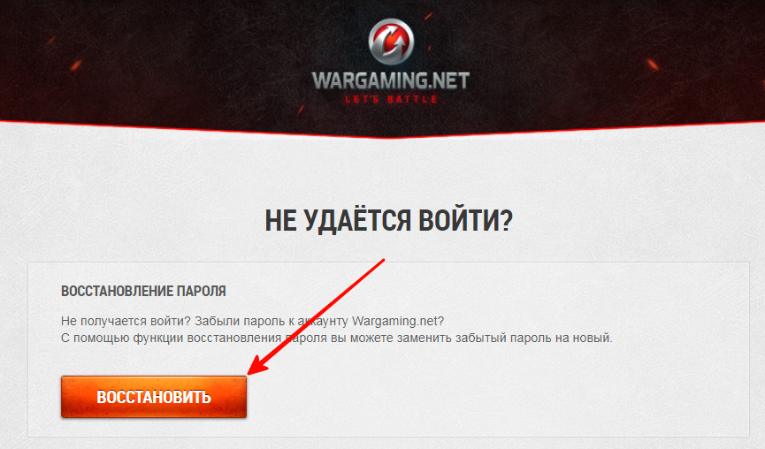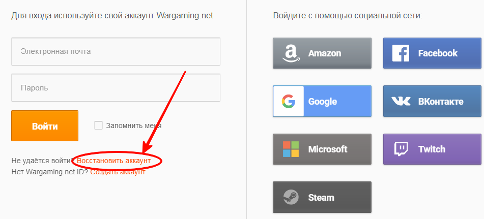 - На странице https://ru.wargaming.net/id/signin/ нажмите «Восстановить аккаунт».