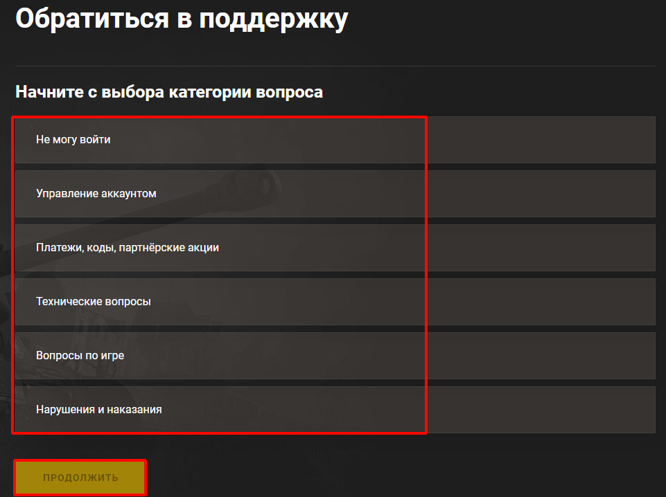 - На странице https://ru.wargaming.net/personal/password_reset/ кликните по кнопке «Центр поддержки».