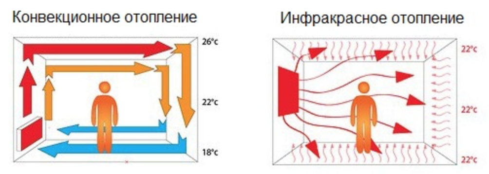 Чугунная печь как костер. Прогревает до костей только когда ты рядом с ним. Такой принцип передачи тепла называется излучающим. Тепло передается как от солнца — излучением. Все предметы находящиеся рядом: стены, мебель, пол — все начинает прогреваться и передавать тепло дальше. Здесь замечу, что именно поэтому чугунную печь надо ставить дальше от стен, чем стальную. Плюсы такой передачи тепла: не сушит воздух, приятно посидеть у печи.