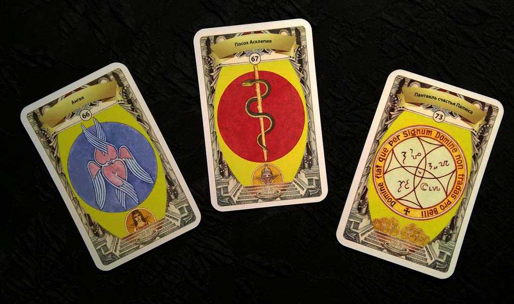 Обратите внимание на то, что все старшие арканы имеют другие названия. Кроме этого вы не встретите привычных чаш, мечей, пентаклей, булав