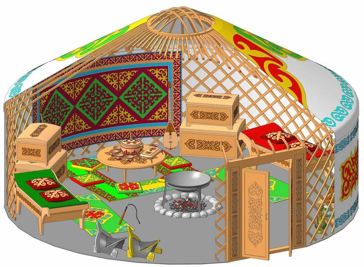 Эта конструкция позволяет юрте быть портативной и удобной в сборке, что особенно важно для кочевого образа жизни
