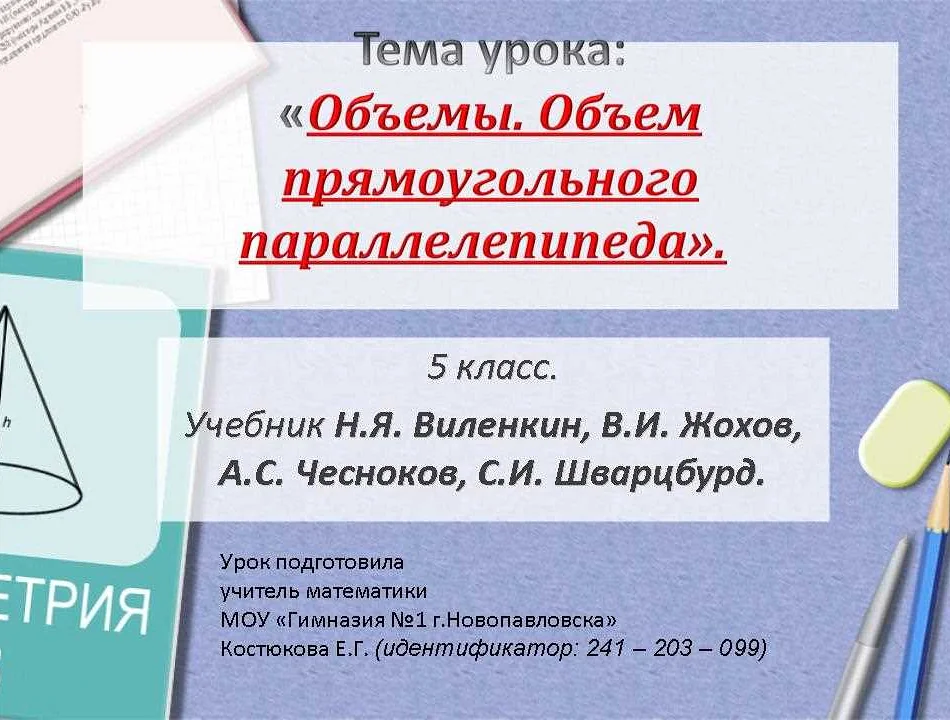 Кубический метр является единицей объема, который можно применять в различных заданиях по математике 5 класса. Например, при изучении площади и объема геометрических фигур, кубический метр может использоваться для нахождения объема куба, прямой призмы или параллелепипеда.