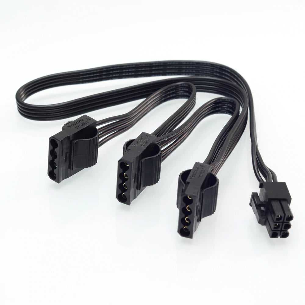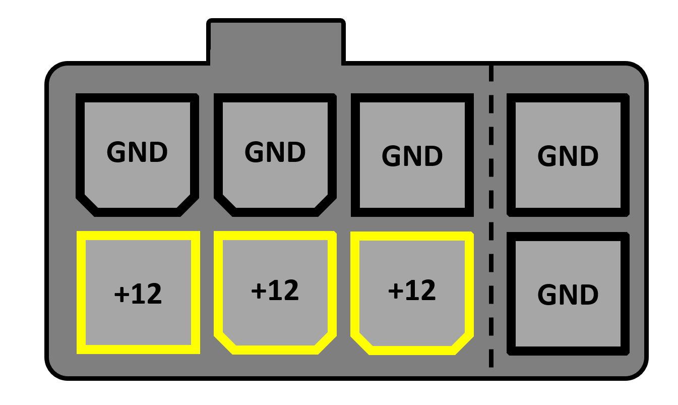 Каждый разъем имеет по одному проводу +12В, +5В и +3,3В, а также два провода заземления, и в зависимости от того, к какому устройству будет подключен кабель, разъем на другом конце будет использовать либо соответствующую, либо упрощённую распайку.