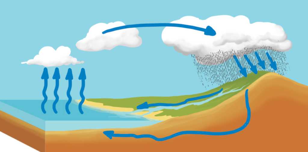 Круговорот воды в природе — это непрерывное движение воды в гидросфере Земли. В процессе этого обмена водная масса меняет агрегатное состояние: из жидкой или твердой превращается в газообразную и обратно.