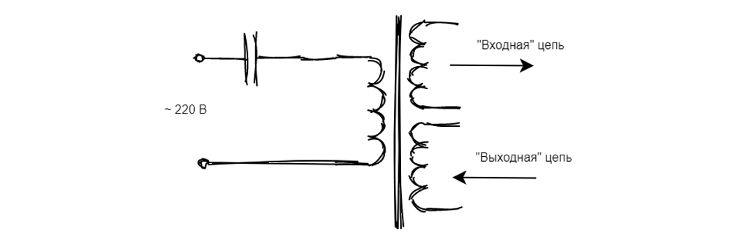 Для отсечения ненужных низкочастотных гармоник ставится конденсатор, который выдержит 220 В. После него, для гальванической развязки и также фильтрации, высокочастотный трансформатор. Трансформатор можно сделать с отдельными обмотками для “входной” и “выходной” цепей (как на изображениях) или использовать одну обмотку на «вход»/»выход».