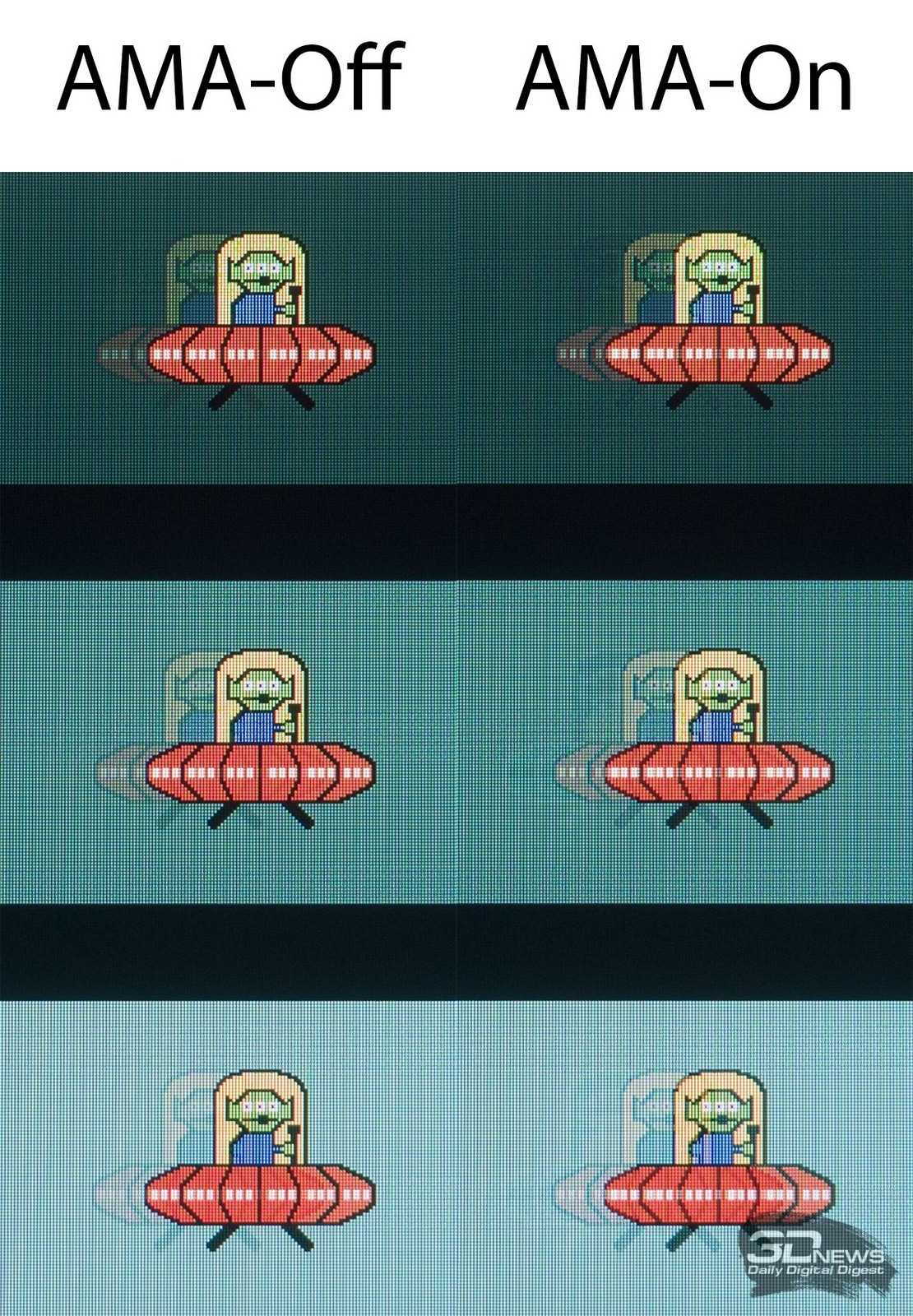 Скорость отклика матрицы вполне типична для современных IPS-type-решений, однако изначальной проблемой SW2700PT являются хорошо заметные артефакты изображения при стандартных настройках AMA. При отключении разгона матрицы шлейф за движущимися объектами слегка уменьшается, а артефакты полностью исчезают. Почему это не сделали сами инженеры – остаётся загадкой.